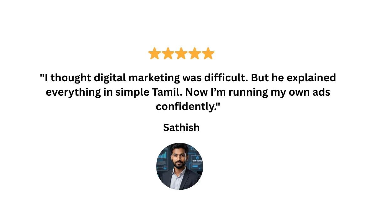 நான் 500க்கும் மேற்பட்ட வியாபாரிகள், ஃப்ரீலான்சர்கள் மற்றும் தொழில்முனைவோர்களுக்கு மேட்டா Ads மற்றும் லீடு ஜெனரேஷன் குறித்த பயிற்சி அளித்துள்ளேன்.எனது நோக்கம், சிறு மற்றும் நடுத்தர வியாபாரிகள் விளம்பரங்களில் தேவையற்ற செலவுகளை தவிர்த்து, நிரந்தரமாக வாடிக்கையாளர்களை அடைய உதவுவதாகும்.இந்த Webinar-ல் நான் பகிர்வது உங்கள் வியாபாரத்தை 10 மடங்கு வளர்க்கும் சுவையான ரகசியங்கள் மற்றும் செயல்படக்கூடிய வழிகள் ஆகும்.நேரடி அனுபவங்களையும், எளிய மற்றும் விளக்கமான அறிவுரைகளையும் வழங்கி, நீங்கள் டிஜிட்டல் மார்க்கெட்டிங்கை முழுமையாக பயன்படுத்தி வெற்றியை அடைய உதவுவேன்.